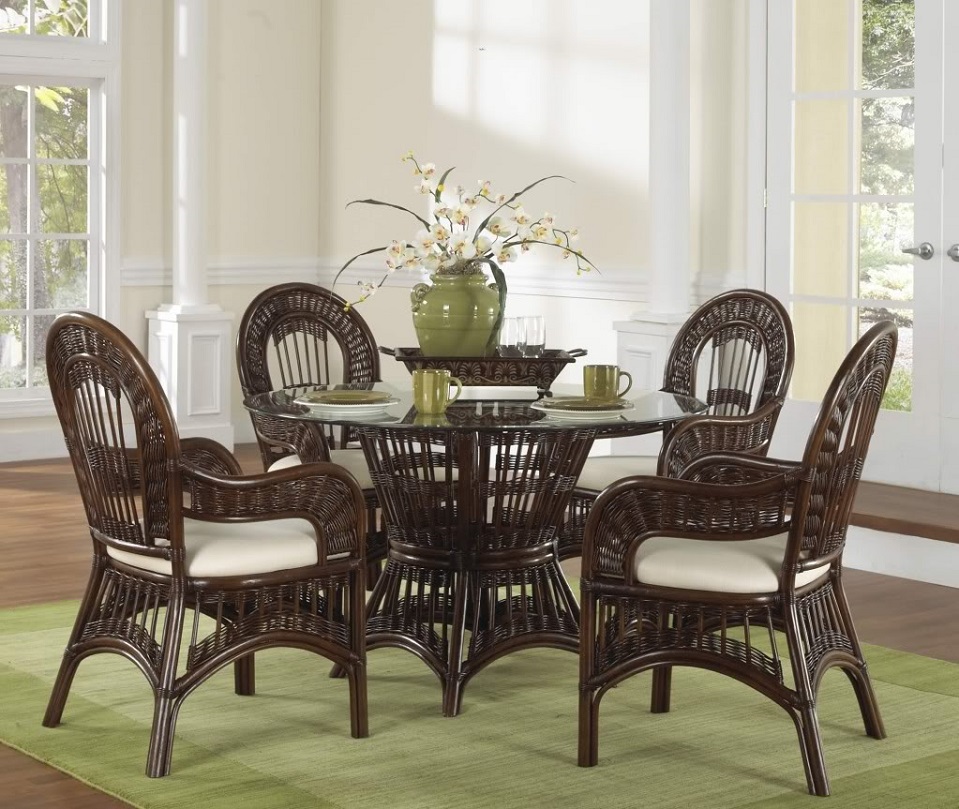 Обеденный стол из ротанга или лозы отлично впишется в интерьер гостиной или кухни с мебелью в силе кантри и прованс. В некоторых моделях столешница плетёная, в других — стеклянная, керамическая или деревянная. Такой стол украсит дачную веранду или садовую беседку с мангалом для барбекю.