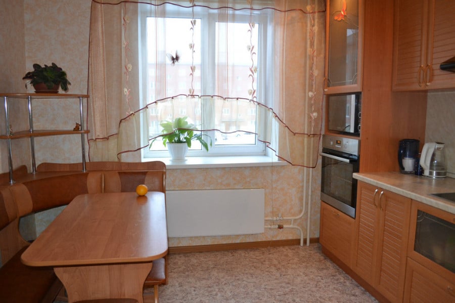 Чтобы люди, сидящие за обеденным столом, чувствовали себя удобно, нужно для каждого обеспечить пространство как минимум 60х40 см. В стандартных маленьких кухнях такую норму выдержать трудно, поэтому допускается установка столов-трансформеров, имеющих выдвижную или откидную столешницу, а также выполняется реализация других мероприятий по эргономичности.