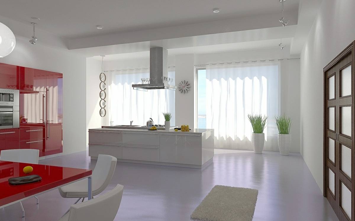 Лучше всего использовать шторы из синтетических материалов – нейлон, полиэстер, вискоза. Они гораздо прочнее натуральных тканей и их проще чистить от различных загрязнений. Все же кухня – место приготовления пищи, следовательно, никто не исключает, что шторы могут впитать запахи и испачкаться. Главное, чтобы ткань пропускала солнечный свет. Модерн приветствует максимальное проникновение в помещение солнечного света, ради чего зачастую расширяют оконные проемы или делают дополнительные окна, в зависимости от того, что позволяет планировка квартиры. Если у вас не очень большая кухня, то лучше брать короткие и воздушные ткани для штор, они сделают кухню визуально больше. Драпировки лучше избегать.