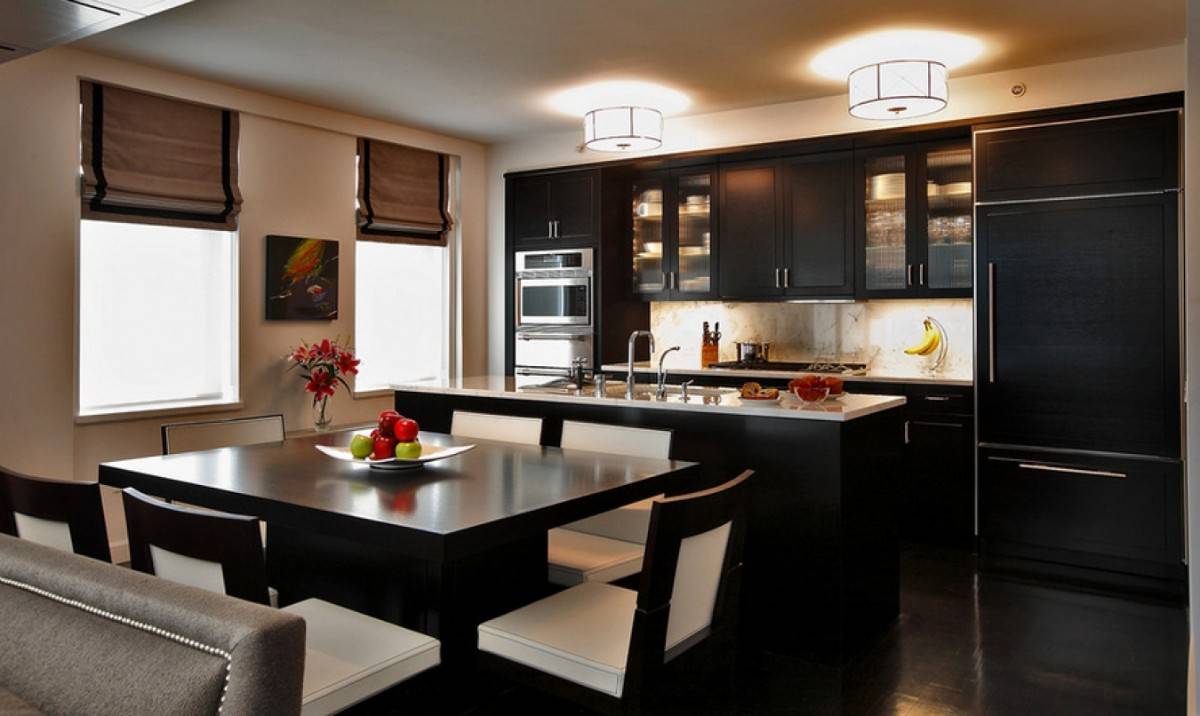 Если кухонное помещение небольшое по площади, то от черного гарнитура лучше отказаться. Он визуально будет скрадывать квадратные метры, может создать давящее ощущение.