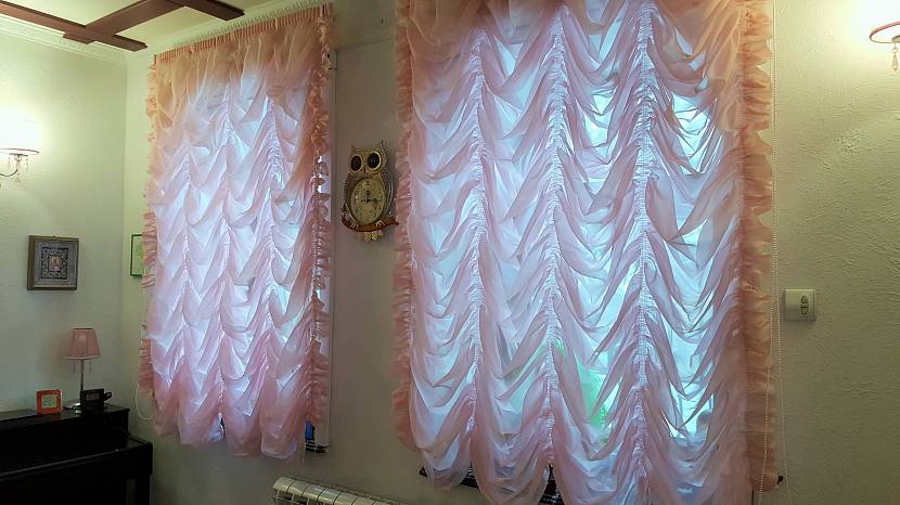 - Штора из органзы готова. Ее можно украсить красивым ламбрекеном иди подхватом.