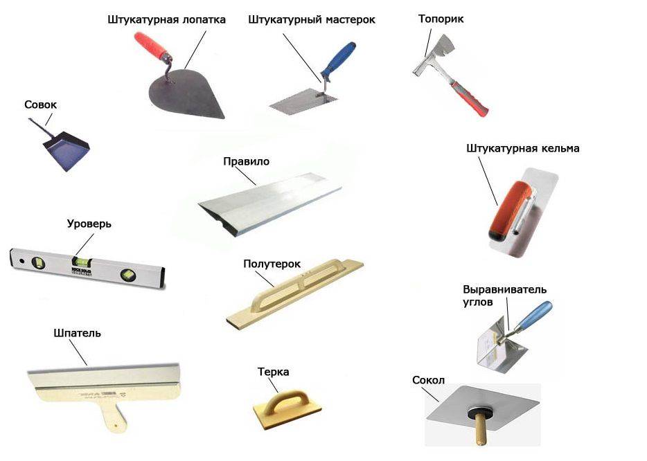 Инструменты: уровень (от 1 метра), емкость для смеси, миксер, шпатели, нож, уголок для штукатурки.