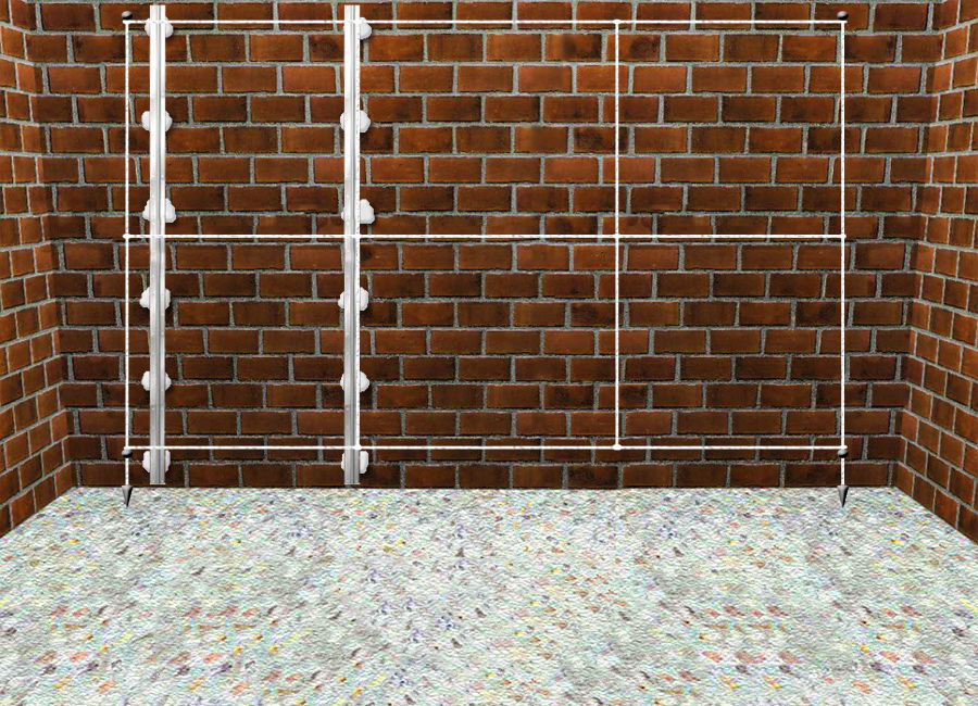 Затем натягивают шнур от угла к углу горизонтально – у потолка и пола.