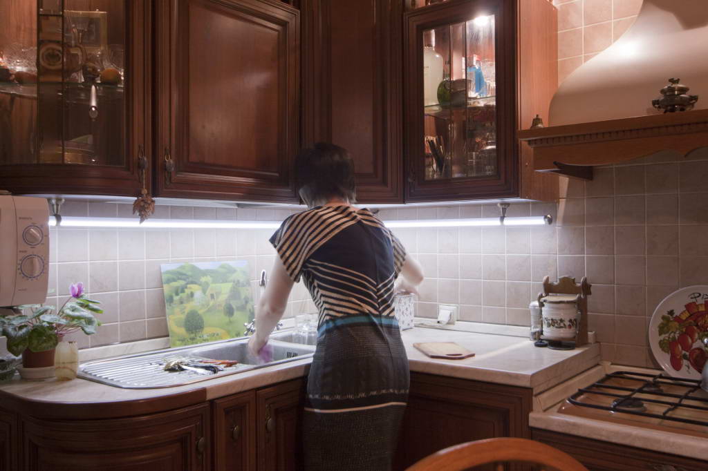 Светодиодная подсветка стала популярной благодаря простоте установки и экономичности. Ещё такие светильники придают дизайну кухонного интерьера изысканность и уют. Атмосфера в помещении с плитой и мойкой — агрессивная. Повышенная временами влажность, брызги воды, капли жира, копоть и другие негативные факторы сокращают срок службы на кухне обычной подсветки. Светодиодная лента или отдельные светильники имеют все меры защиты от механических, температурных и иных повреждений. Их без опаски крепят даже в непосредственной близости от плиты или над мойкой.