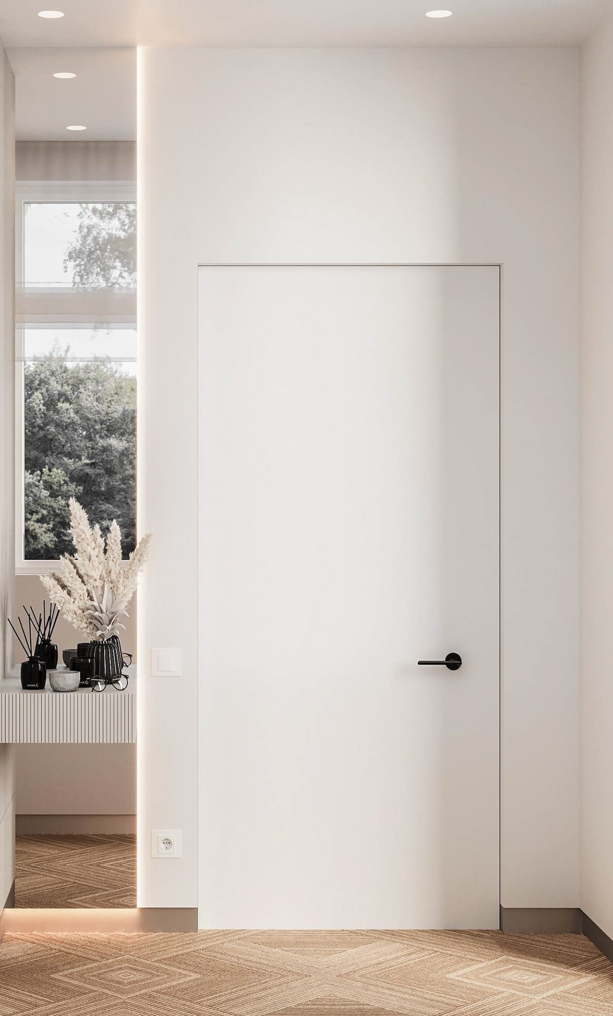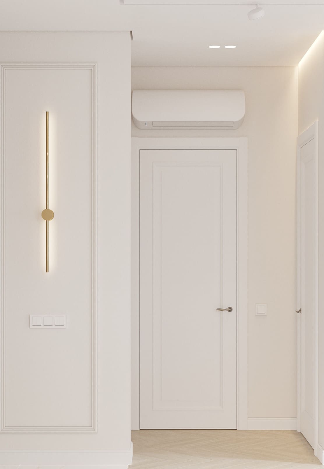Белый — основа основ. Говорят, что если вы не можете выбрать оттенок, отдайте предпочтение именно белому. Он подходит для потолка, стен, входной двери, мебели.