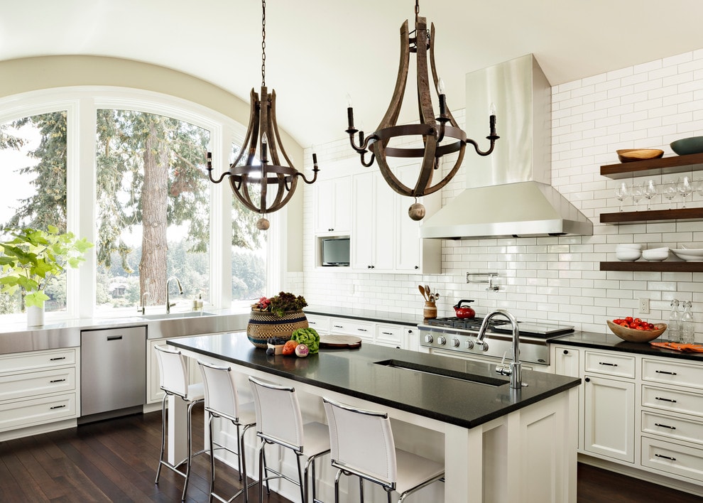 Если на вашей кухне имеется большое окно, то в дневное время на ней будет достаточно света, а вот вечерами вам придется пользоваться искусственным. Основная нагрузка будет возложена на верхний свет.