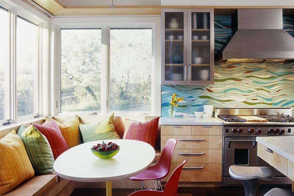 Рассмотри возможность увеличения площади кухни. Возможно, к ней примыкает лоджия или балкон – их можно присоединить к территории, утеплить и оборудовать там обеденную зону.