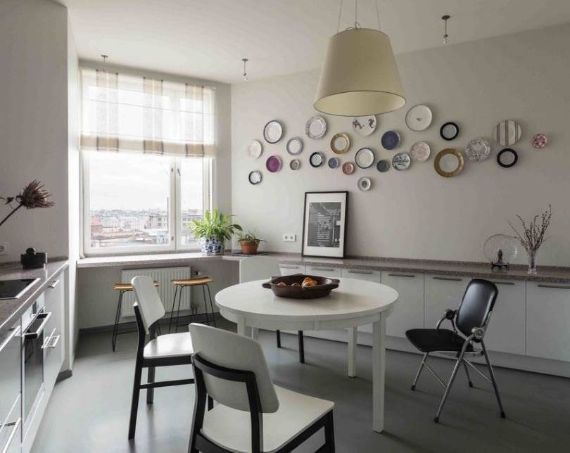 Следующий вариант интригует тем, что, даже используя белые тарелки на белой стене, получается определенный контраст и четко видно ярко выраженные объемные формы. Возможности неограниченны — просто наслаждайтесь.