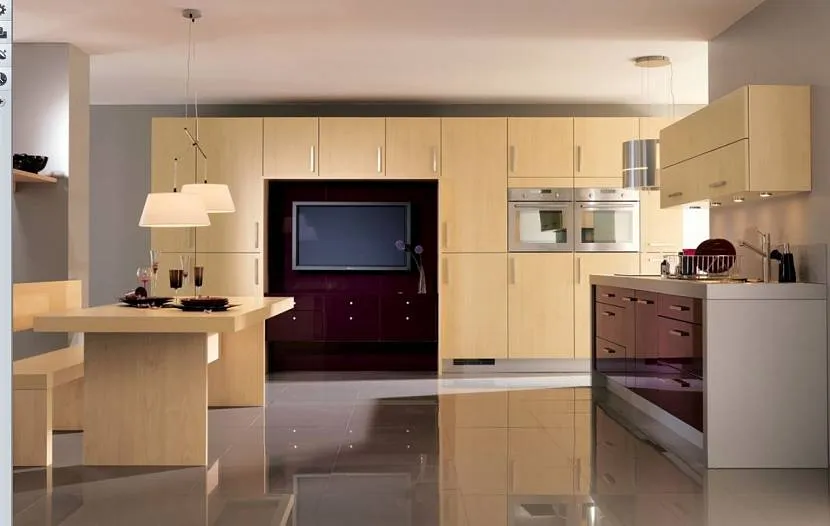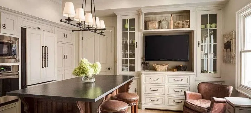 При планировке кухни закладывается специальное место, куда позже помещают телевизор.