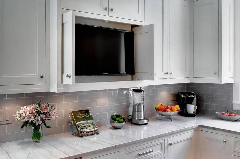 Телевизор, спрятанный в нишу кухонного гарнитураИсточник ciscoexpo.ru