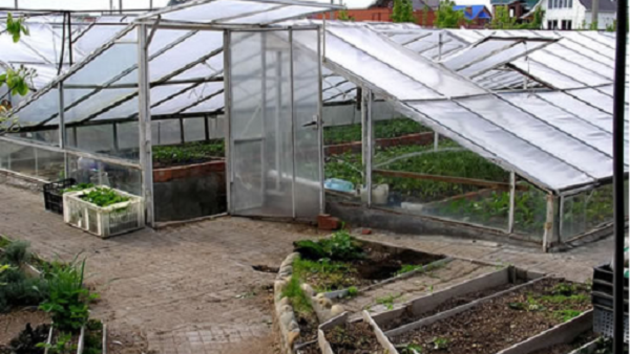 - Скат крыши, направленный на юг, покрывается парниковыми рамами.