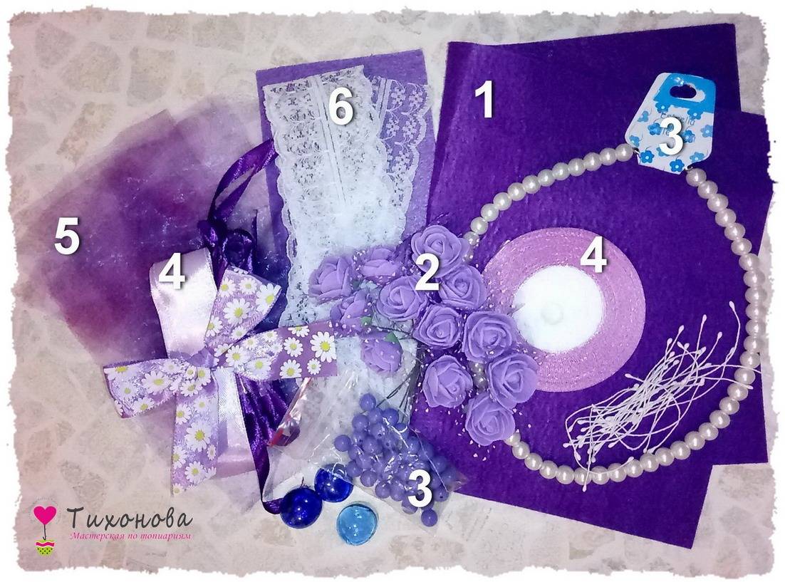 - Лист фиолетового фетра А4 — 3 шт.