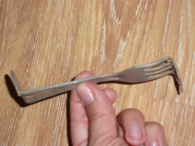 Лучше всего подойдет посуда из кофейного сервиза, так как по размерам они обычно небольшие. Клеевой пистолет используется для работы с неровными и шероховатыми поверхностями, а для остальных — обычный клей Момент. Подойдет металлическая вешалка или алюминиевая вилка.
