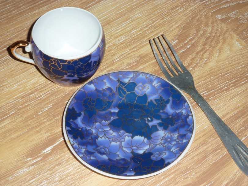 - Приобретите сразу несколько чайных или кофейных пар, запастись вилками. Вполне возможно, вам не нужно будет идти в магазин – все для творчества можно найти на антресолях;