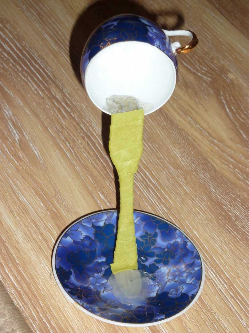 Приклеиваем один конец к чашке, после того как клей схватится, приклеиваем второй конец к блюдцу. Для окончательного застывания клея оставляем на 24 часа.