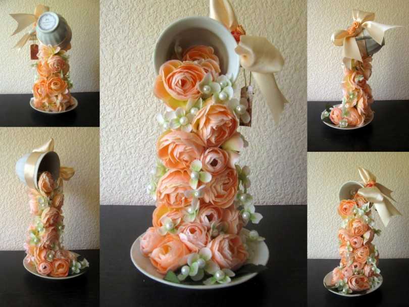 Парящая чашка или кружка, каждый эту композицию называет по своему, есть даже топиарии с кружками летящими, но до них я пока не добралась. Сегодня я вам покажу много вариантов таких чашек с фотографиями и видео, а так же предоставлю подробный мастер класс, после которого должно появиться желание и у вас.