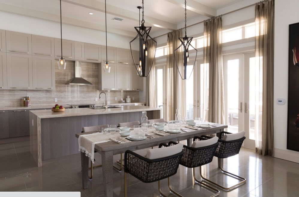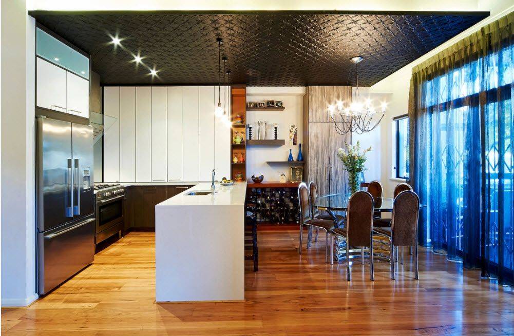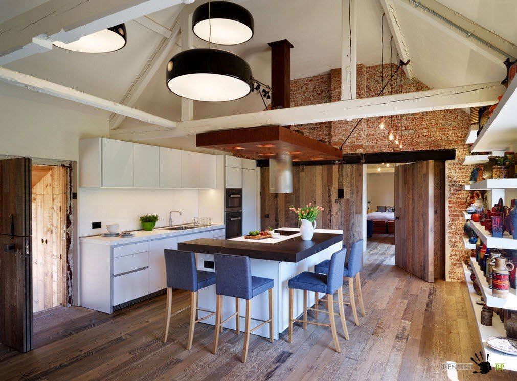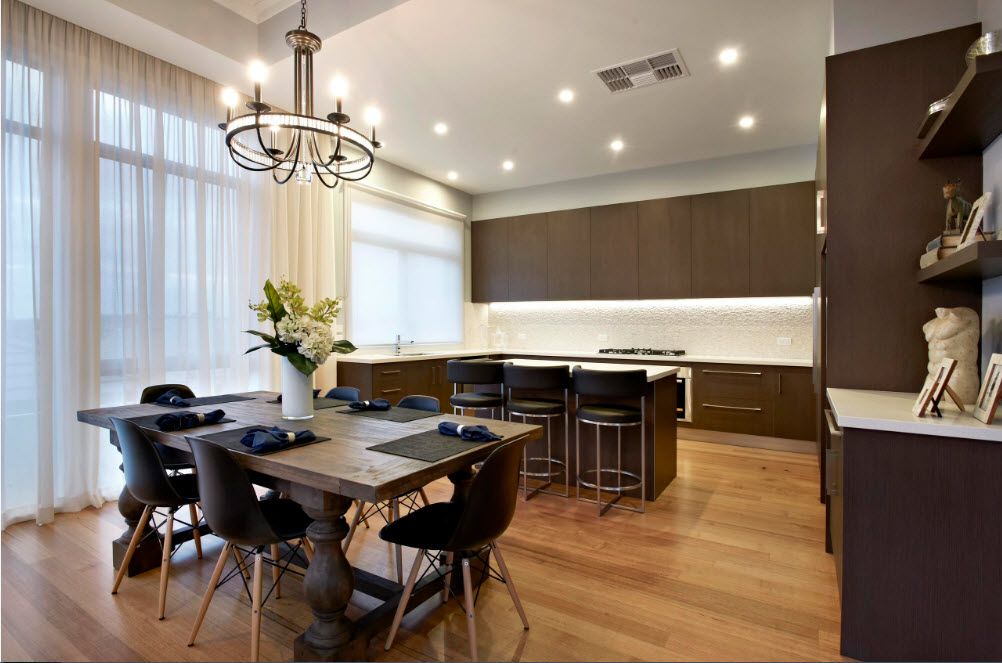 Бандо шикарно смотрится на кухне совмещенной с гостиной