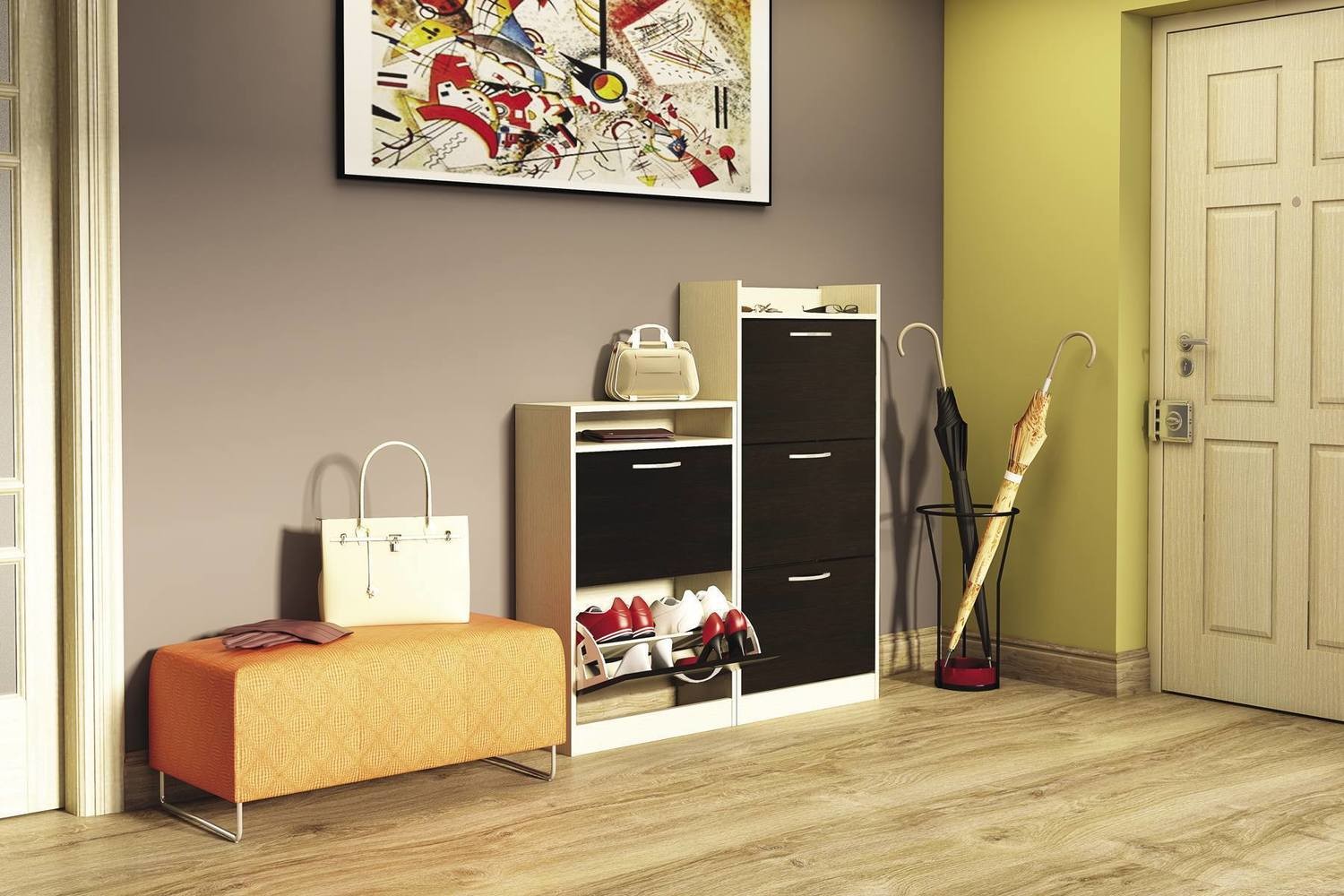 При отсутствии гардеробной обувные тумбы устанавливают в прихожей. Выбирают такие модели, в которых помещается не только повседневная обувь, но и вся сезонная. Выбор габаритов, цвета и дизайна зависит от отделки самого помещения. Желательно предпочесть те цвета и материалы, которые уже присутствуют в оформлении входной зоны. Размеры и расположение тумбочек выбирают с таким учетом, чтобы не загораживать мебелью проход.