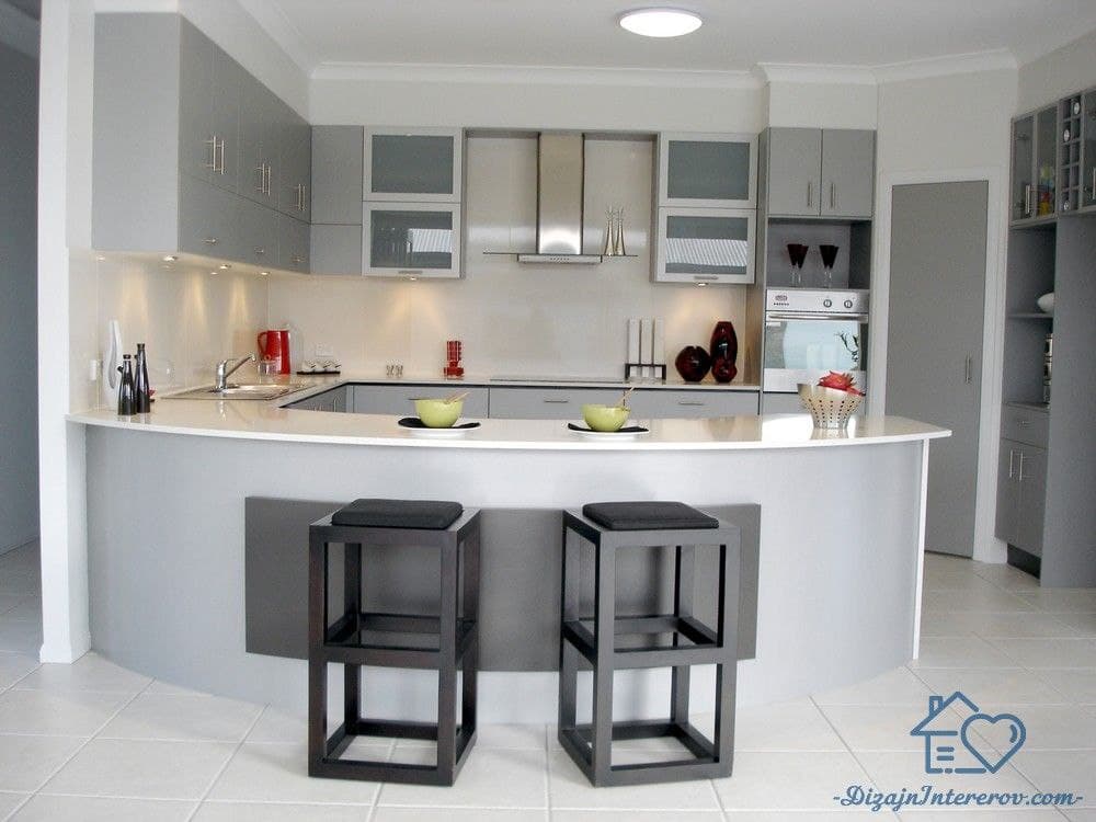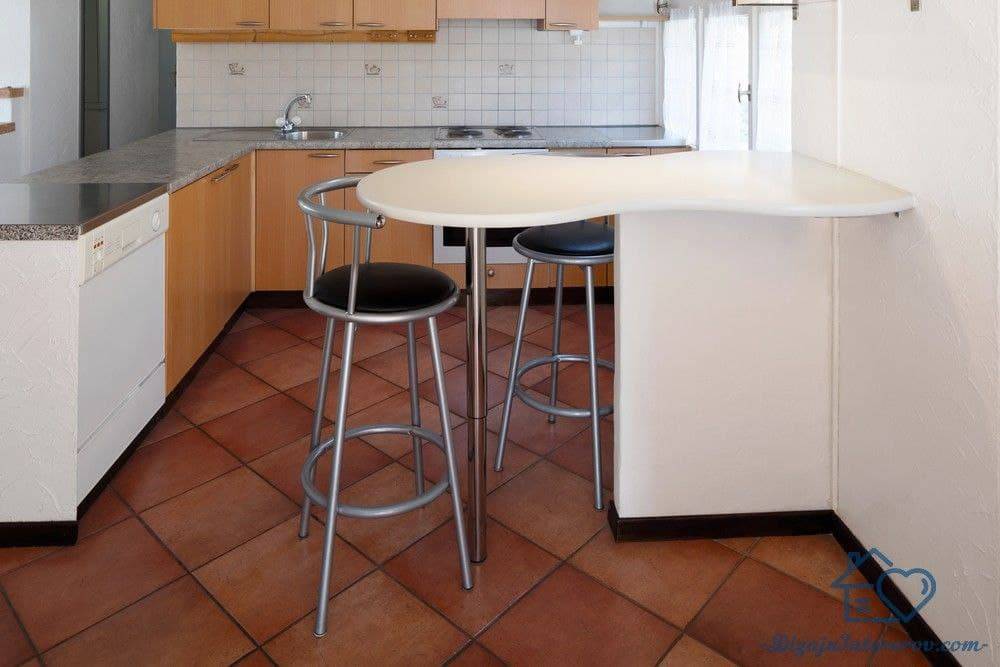 Еще один вариант — использование не полноценной барной стойки, а создание небольшой полукруглой или овальной пристройки. Такая конструкция не займет много места, но обеспечит одну-две обеденные зоны.