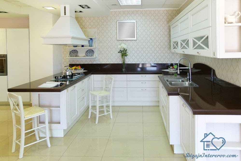 Для полной гармонии с интерьером фартук гарнитура должен быть белым, как и столешница.