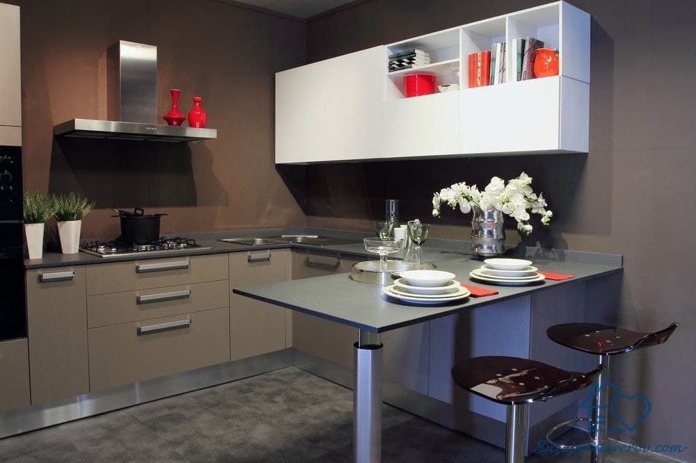 - Занимает больше места, чем прямая. Не стоит устанавливать там, где кухней практически не пользуются и не хранят больших припасов.