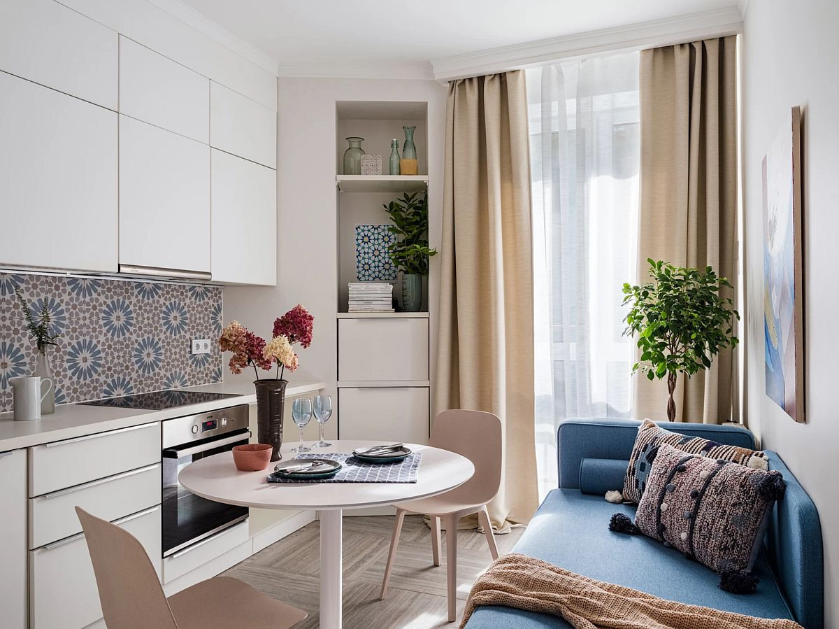 Интерьер кухни в однокомнатной квартире с обеденной зоной