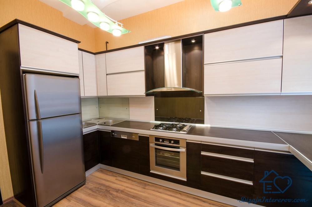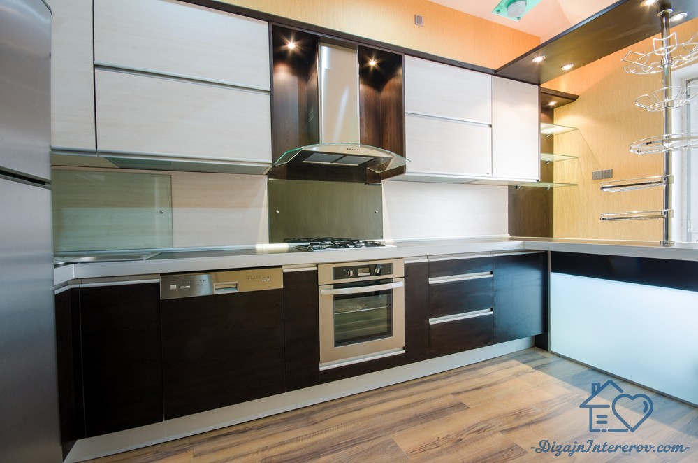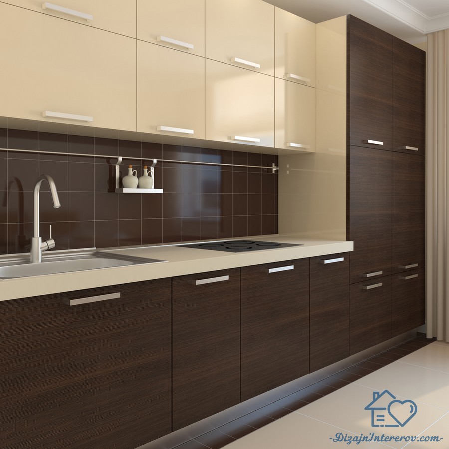 Стильный дизайн кухни цвета венге