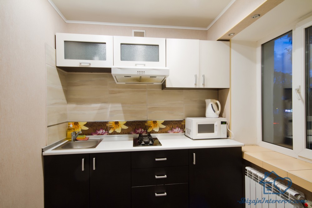 - На небольших пространствах правильнее совмещать кухню венге, где верх белый, а низ темный.