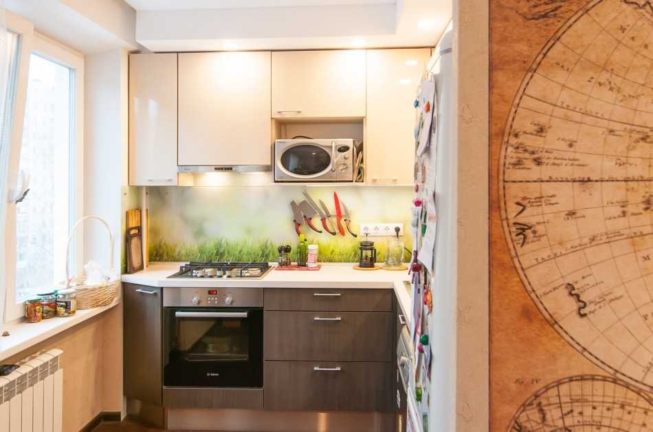 Угловой кухонный гарнитур для маленькой кухни качественно организует комнату даже с площадью менее 5-10 м/кв.