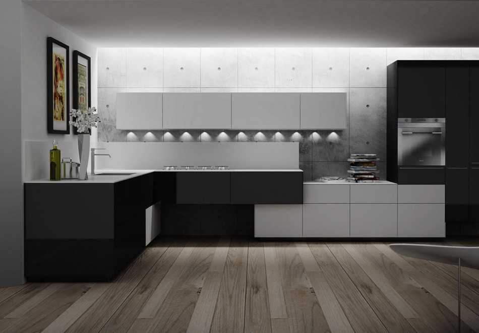 Как и в конструкции, в цветовом оформлении угловых гарнитуров в этом сезоне в моде минимализм. Лучше, если фасады кухни будут однотонными. Принты и значительное количество декоративных украшений не приветствуются, в моде в 2022 году контрасты и акценты. В особенности удачными могут быть сочетания черного и белого: