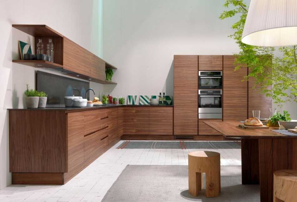 Очень удобно, если нужно расположить много кухонных элементов, на это отводится не так много места. Но есть и другие преимущества, а именно: