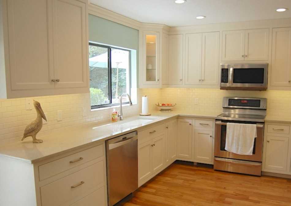 Если в кухне буквой Г недостаточно света, желательно выполнить ее в следующих тонах: