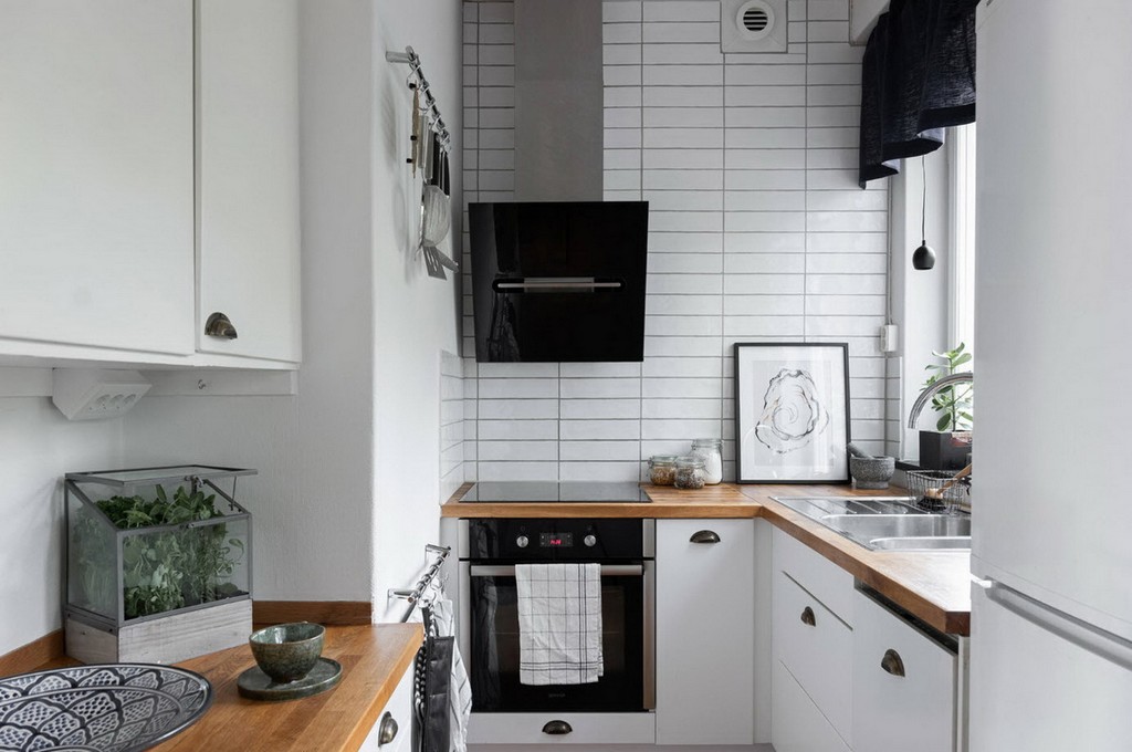В ограниченных пространствах нужно визуально создать ощущение свободы и простора, при этом сохранить функциональность кухни.