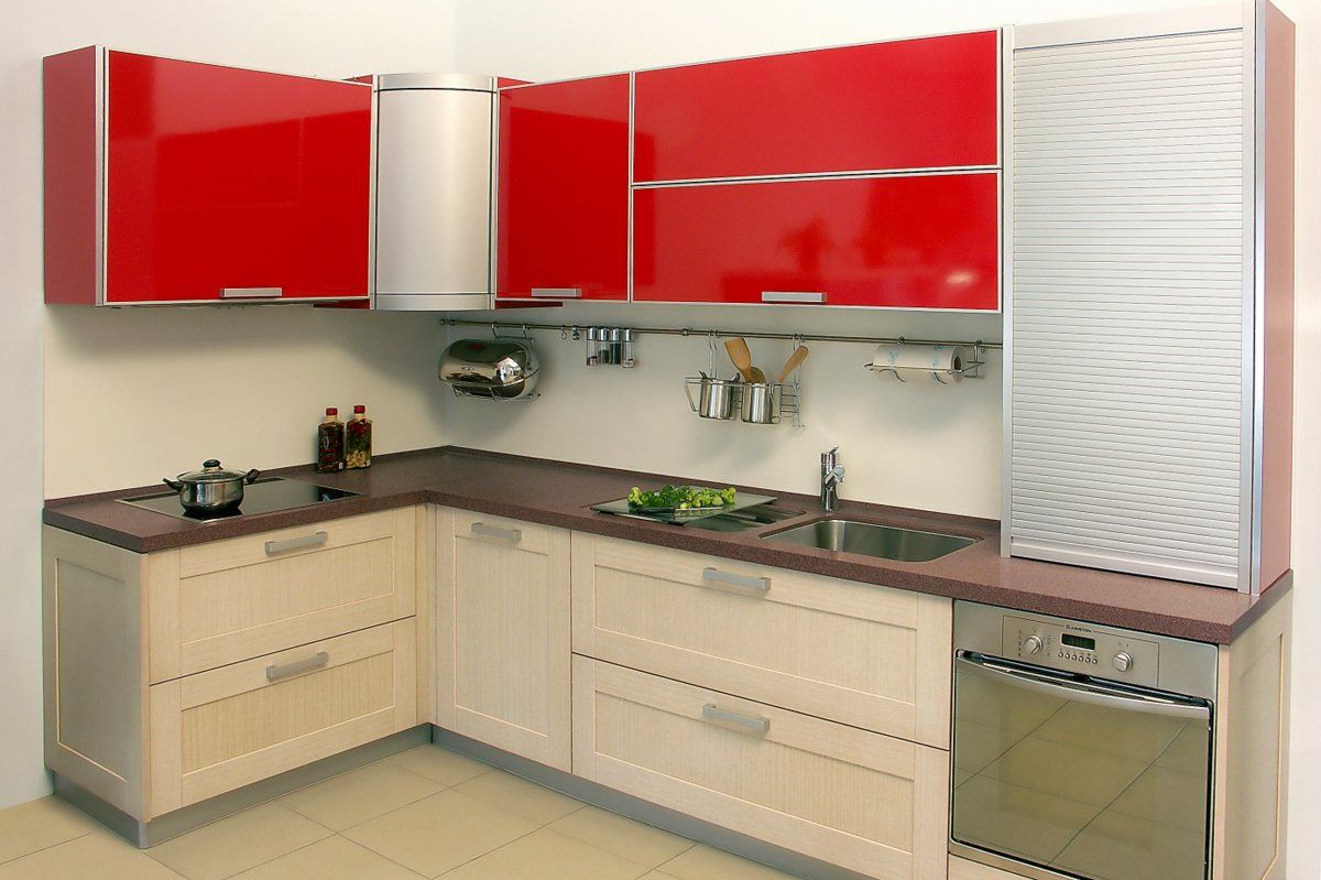 - для любой маленькой кухни мебель с выдвижными ящичками будет самым лучшим вариантом. Угловых гарнитуров это тоже касается. Кроме экономии пространства вы можете разместить все необходимые предметы на свои места. Удобство этих приспособлений очевидно, каждый раз наклонятся не придется, если самые необходимые предметы будут на расстоянии вытянутой руки. Пример таких изделий можно посмотреть на фото;