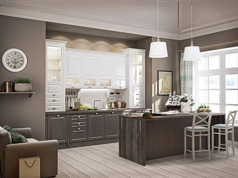 - Стиль. Даже кухонные гарнитуры под дерево бывают в разных стилях: классика, современный, лофт, сканди, кантри, прованс. Определитесь с наиболее подходящим направлением для себя, только после этого заказывайте кухонную мебель.