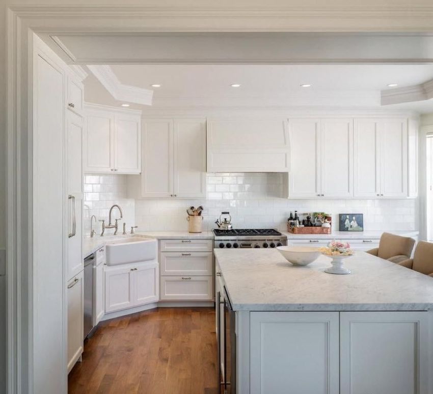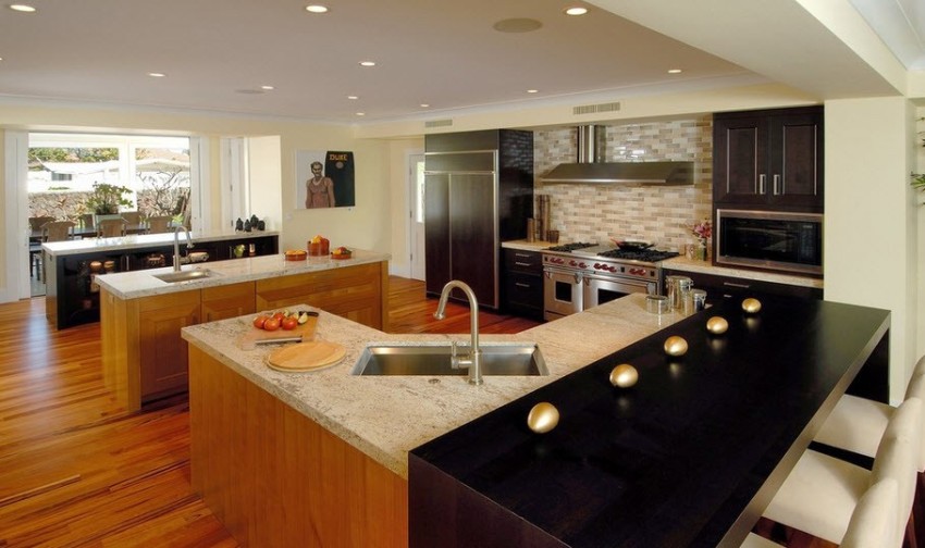 Мойка, встроенная в угол кухонного острова