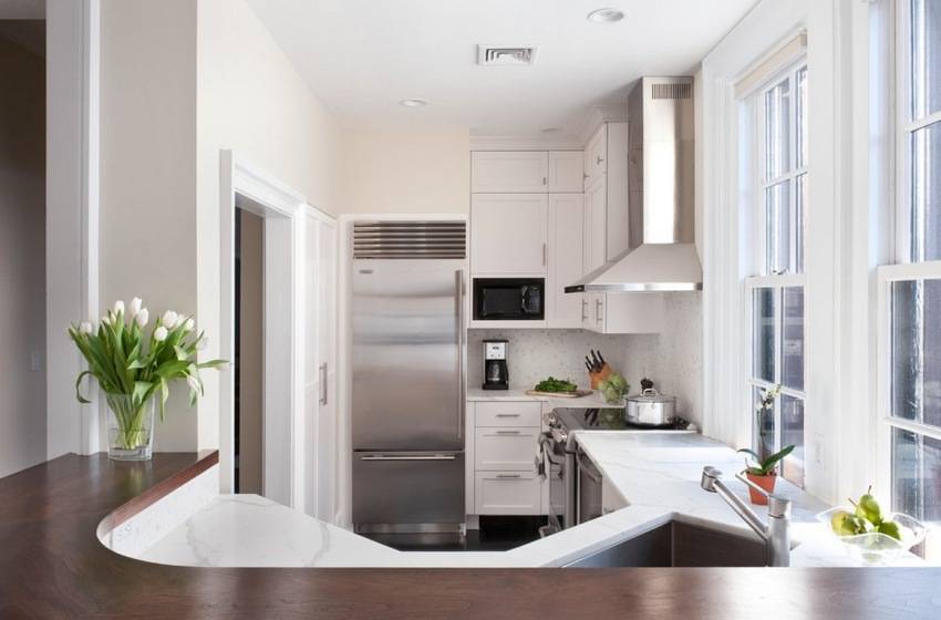 - экономится пространство, появляется возможность дополнительно установить бытовую технику, выбрать более крупную плиту, холодильник;