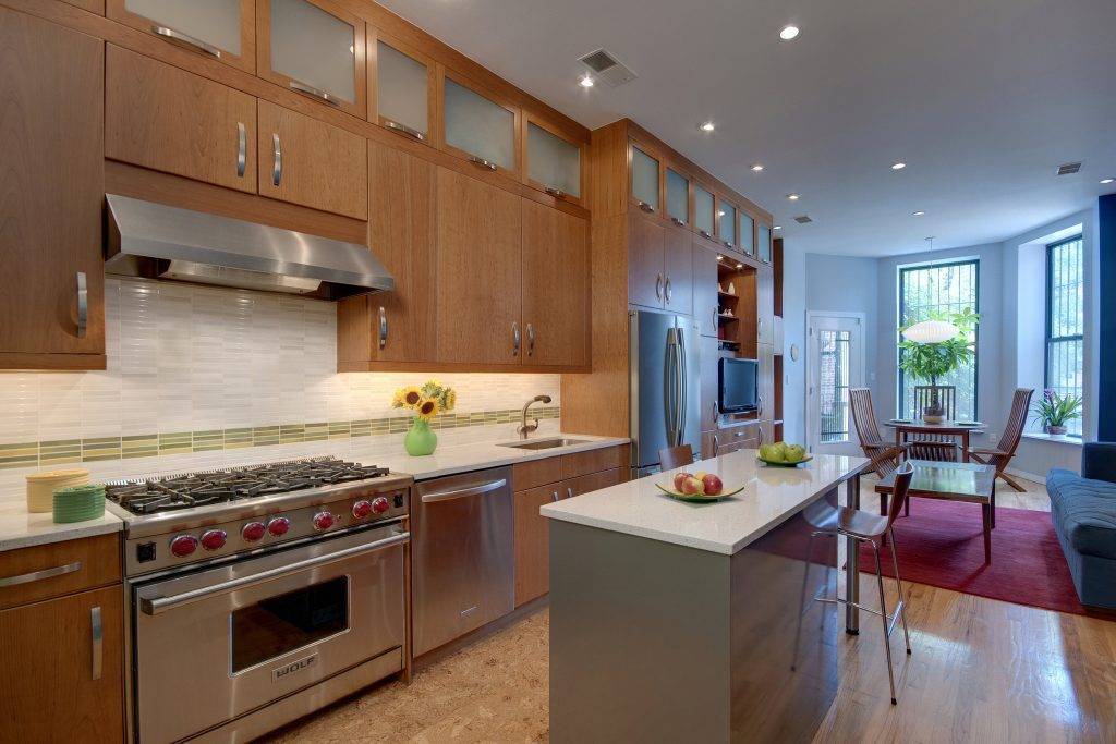 - красивое зонирование при использовании острова, полуострова или барной стойки;