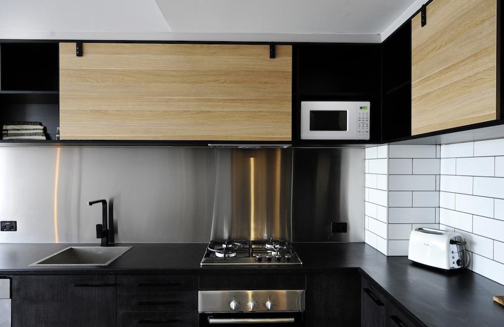 Лучше поставить обычные дверцы и хранить редко используемые бытовые приборы (у меня там тостер, вафельница, блендер и мультиварка).