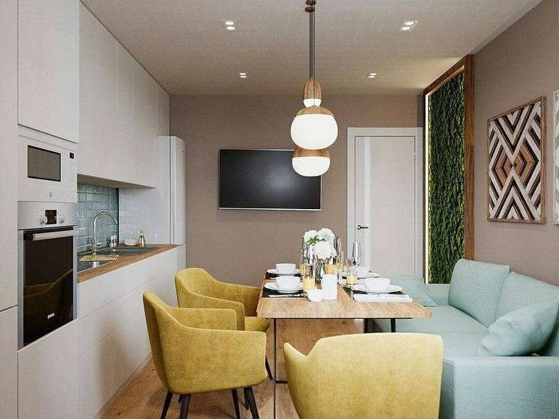 Сейчас есть удобные мягкие барные стулья со спинкой. Если нужно полноценное место для совместного приема пищи, барная стойка или барный стол — отличная альтернатива и занимают меньше места.