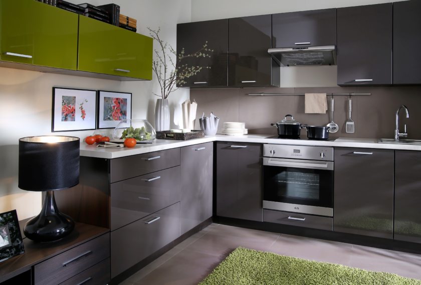 Фасад угловой кухни цвета лаймаИсточник designmyhome.ru