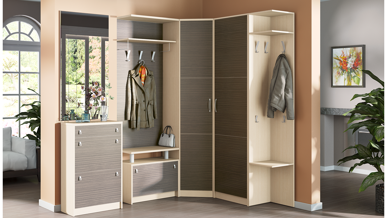 Кроме того, в планировке квартиры играет роль размер собственно шкафа. Маленькая угловая прихожая – отличное решение для владельцев жилья.