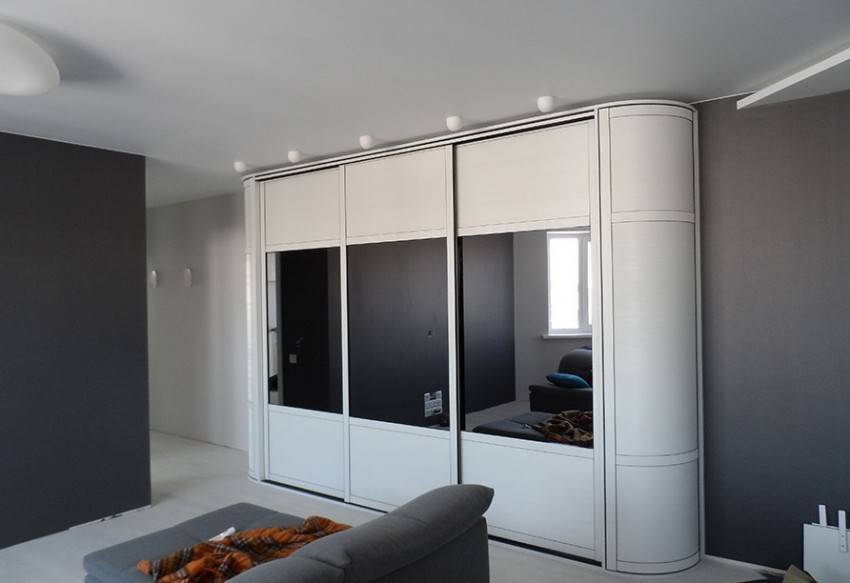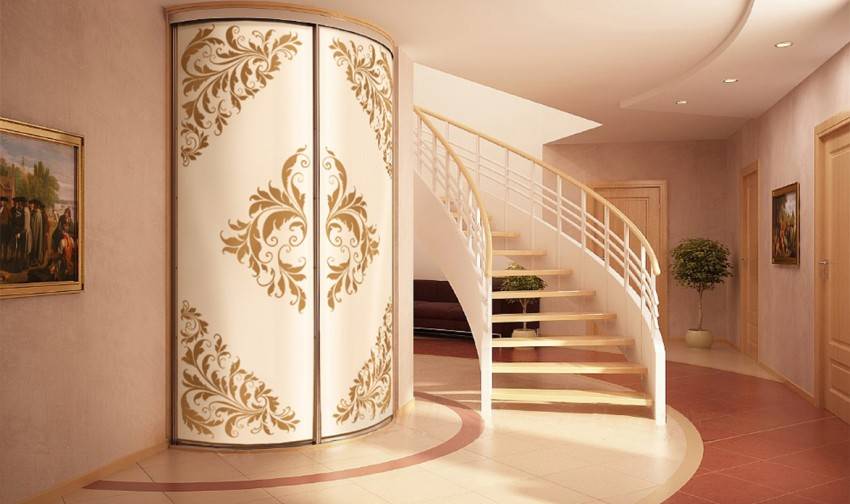 Выпуклые сегменты зачастую используют в прихожей и спальне как небольшую гардеробную.
