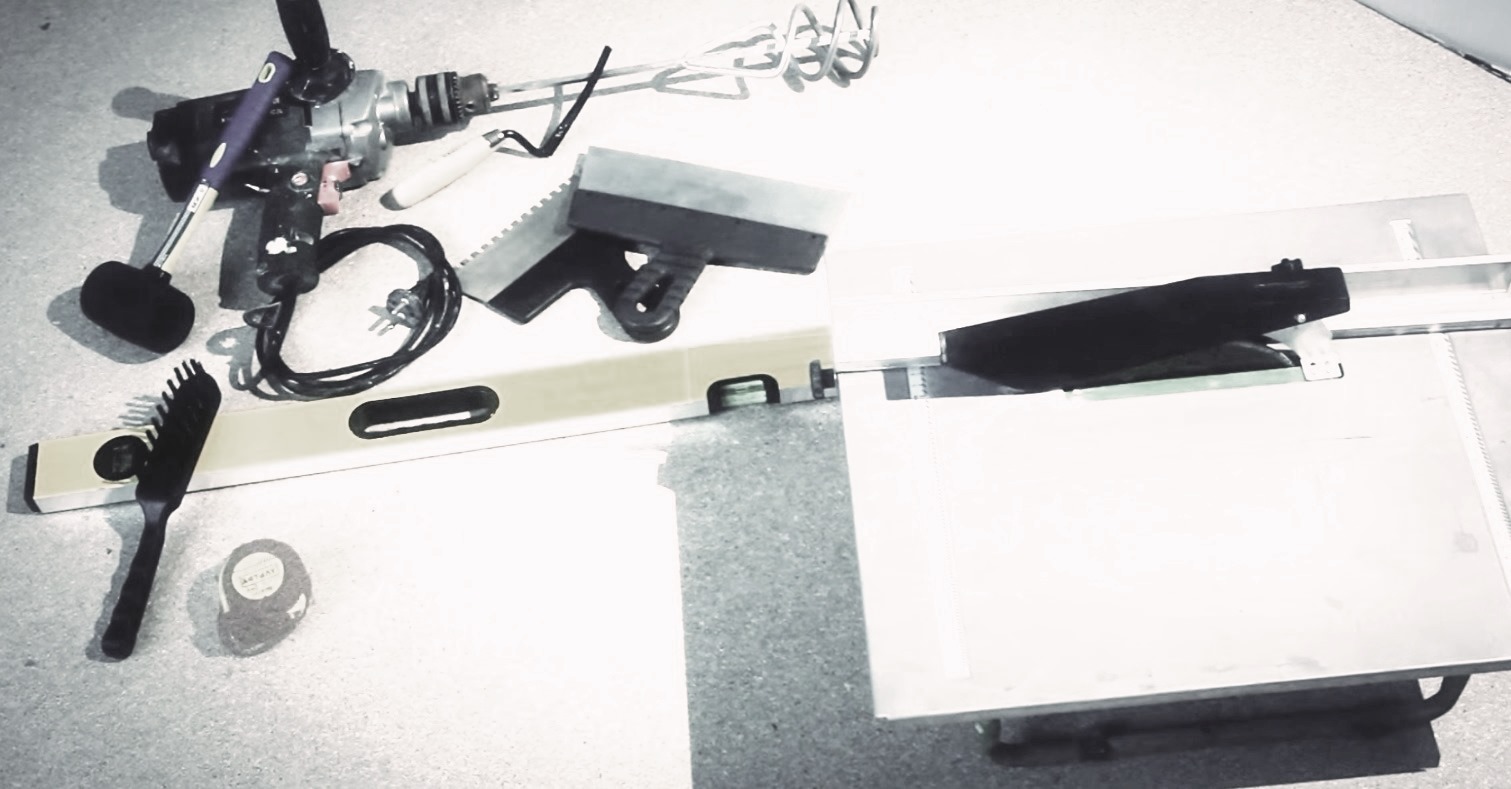 - Дрель с насадкой для замешивания клея – сухой цементный раствор или специальный клей требует разведения.