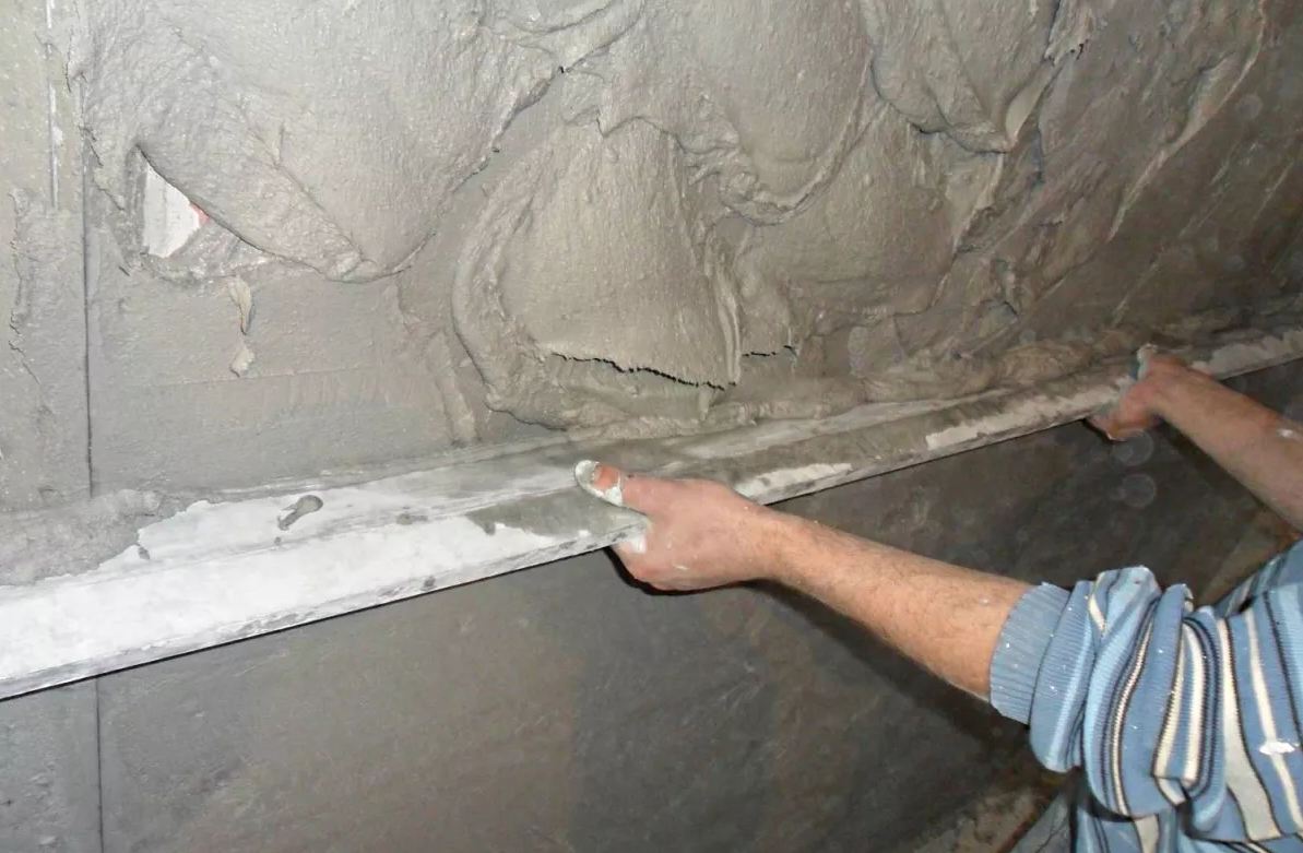 - Стену требуется оштукатурить по маякам бетоно-цементом, если она кривая или на ней отсутствует любого вида отделка.