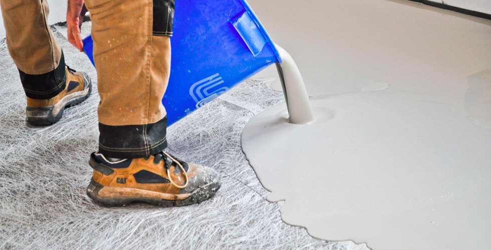Шаг 3. Если уровень влажности превышает 2%, наносится гидробарьер (специальная влагоотталкивающая грунтовка, которую наносят в два слоя с часовым перерывом между ними). Первый слой барьера посыпается кварцевым песком.