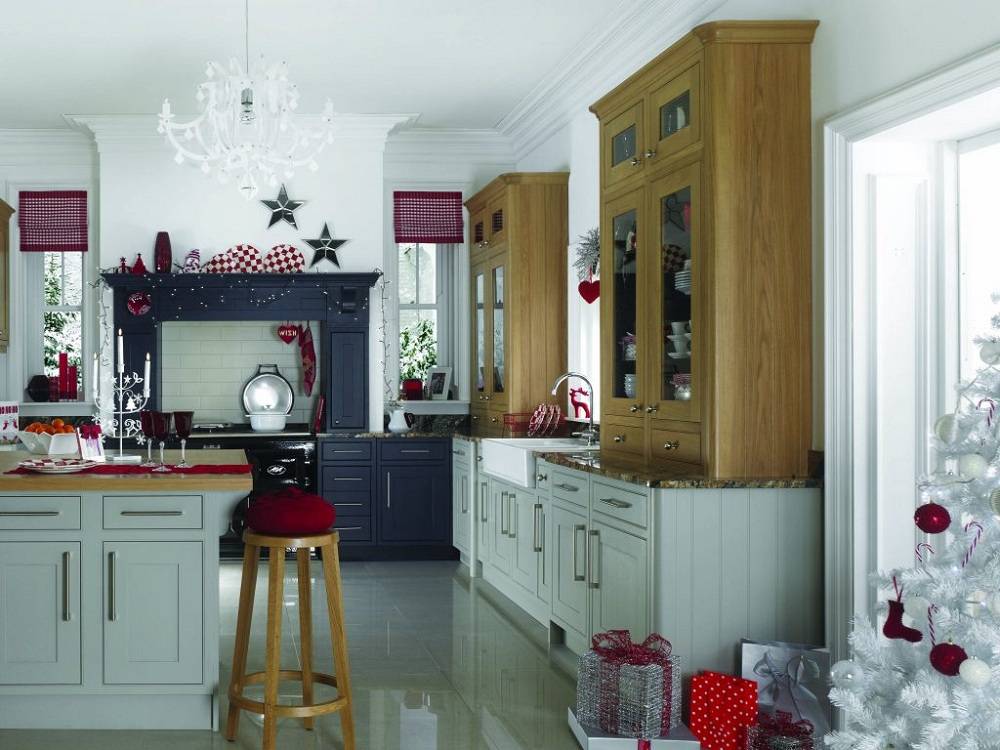 Использовать красный и все его оттенки в оформлении кухни к Новому году можно и нужно, но достаточно осторожно. Если речь не идет о европейском стиле, алыми тонами стоит делать только акценты