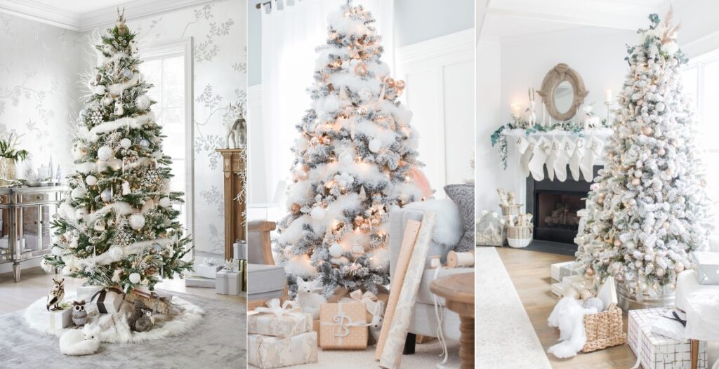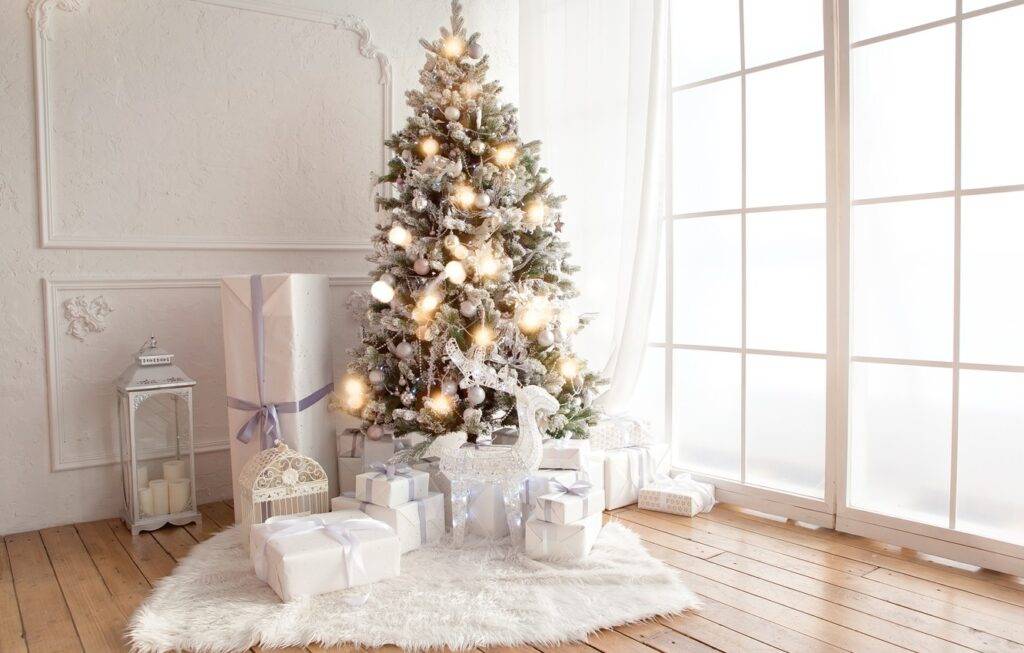 Золотые игрушки и белый снежок — естественное сочетание цветов на Новый Год
