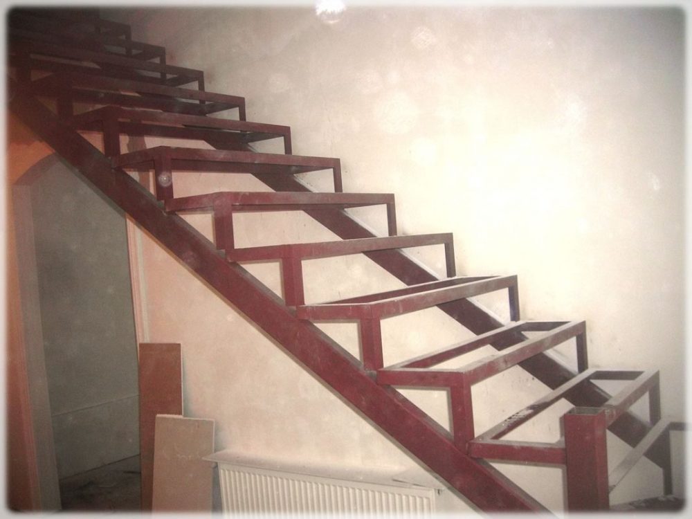 Самая простая конструкция металлической лестницы собирается следующим образом: