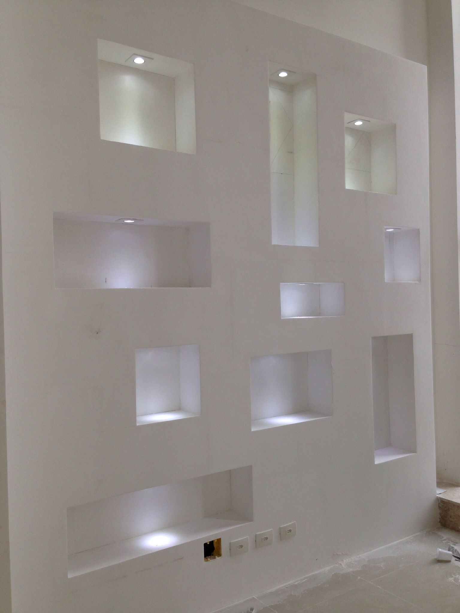 Немного фантазии и вкуса и стены из гипсокартона будут не только делить пространство, но и нести очень полезную функциональную нагрузку при размещении на них источников освещения, например
